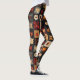 This leggings features a denim-textured folk art quilt pattern, blending autumn and country-style charm. The patchwork is composed of square blocks stitched together, each showcasing a distinct motif such as pumpkins, fall leaves (oak and maple), birds, sunflowers, hearts, and stars, all in a rustic primitive Americana style. The warm palette of oranges, reds, and browns contrasts beautifully with dark blue and black backgrounds, adding depth and a cosy, handmade feel. Perfect for farmhouse décor, autumn crafts, Thanksgiving projects, rustic textiles, and country-inspired DIY designs.