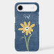 An iPhone 17 Air Case with a retro-modern vibe, featuring a denim-textured finish and a bright yellow daisy, customizable with your initial for a personal touch.