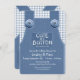 Cute as a button baby shower invitation, cute denim overalls with blue gingham shirt and a lollipop in the back pocket, baby shower invitation. Perfect for farm themes or rustic country baby showers.