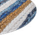 motley Patchwork rug from denim jeans fabric, top view. Recycle old jeans denim floor mat, door mat, area rug. Boho style background. Recycling denim cloth carpet