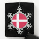 Denmark country flag symbol long snowflake pewter christmas ornament