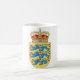 The national coat of arms of Denmark (Danish: Danmarks rigsvåben) consists of three crowned blue lions accompanied by nine red hearts, all in a golden shield.
