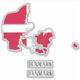 Denmark Flag Map Outline Sticker in the outline of the Denmark map. The map is infused with the pattern and the colours from the Denmark national flag. Small stickers with the country name are also included. Denmark map sticker is the perfect sticky gift that can be placed anywhere your heart desire. © CountriesOfTheWorld