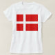 The front of this t-shirt boldly displays the Danish flag with its distinctive offset white cross on a red background. This is matched at the back by an attractive map of Denmark.