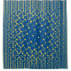 The shower curtain shows the design 'Density' in lapis blue and primrose yellow. For colour customisation and custom designs enquire by using the contact button.