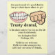 Drawing of a mouth showing teeth, and a hand with index finger pointing out at you.
