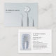 Make a lasting impression with this clean and professional business card, perfect for orthodontists, dentists, or dental specialists. Featuring sleek dental instruments and a 3D tooth graphic, this design pairs a minimalist layout with elegant typography to highlight your credentials. Customisable with your name, title, office details, and a brief practice description.