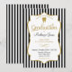An elegant black and gold Dental School graduation announcement invitation featuring faux gold glitter accent frame and black and white stripes with gold and black text and a gold glitter tooth. This elegant dentistry graduation announcement is great for dentist, dental hygienist, oral surgeon, orthodontist or any toothy grad.
