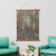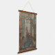 The polyester fabric displayed many wrinkles and several sharp creases throughout.  At the bottom of the tapestry, I noticed a bulge in the fabric because it was not pulled tight enough before being connected to the wooden boards.  It took me over an hour to spay water on the tapestry before putting it on an ironing board where I used a warm iron over a polyester cloth to remove the wrinkles and creases in the material.   I was able to get out the wrinkles and creases that made that tapestry look as beautiful as its picture.