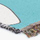A quality printed throw has its advantages. This is a much finer weave throw than its loopier cousins, and though lighter, it is worth the investment for custom room accessorizing. The back is much prettier than the typical brown, and the fringe on the long sides very vivid, the selvage nicely done. Before photographing, I washed the throw in cold water, delicate, with a thicker woven throw the same size. On tumble dry low, this throw was dry in half the time as the other. This is a very practical quality if you use throws for furniture covers or to wrap up in frequently. The sleekness of the fabric makes it a great layer for accenting or protecting without the feeling of sitting on too much stuff. Perfect for napping or when you feel a light chill coming on. The color printing is beautiful and on this fabric, matched the design and color of my Photoshop image. This is an advantage for blending room fabrics and colors. The fringe on the short sides prints the colors from the design image and therefore varies from the side fringe. I streaked a white fractal line through the plaid pattern to give the illusion of weaving. This printed as crisp as an illusory thread, and put some white in the short side fringe, showing another advantage of print vs loomed- for artistic purposes, line lines, detail, and color integrity can be planned and preserved. My loomed throws have color limitations and more of a needlepoint texture. Print throws reproduce an exact image. The throw felt a little stiff straight out of the package, but this went away in the first delicate wash. Of course I searched the wash water for ink or bleeding and there was none.