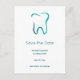 Save the date postcard with an illustration of a dental tooth. Drawn with a green gradient outline.