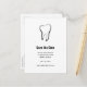 Save the date postcard with a graphic illustration of a dental tooth made with a black outline.