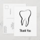 Thank You postcard with a graphic illustration of a dental tooth made with a black outline.