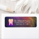 Modern Professional Dentist / Dental Clinic / Dental Office / Dental Care / Dental Hygienist / Cosmetic Dentist / General Dentist / Equine Dentist Return Address Label Templates - Elegant Colourful Glowing Chic Rose Gold Tooth on Black Metallic Background.