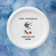 Do you know a hard working dental school student who is about to graduate and become a dentist? This funny plate has a dinosaur with a tooth brush and a graduation cap. The text says, "Roar!" is dinosaur for "Congratulations, Amanda.", but the text can be changed and personalised to fit your needs!