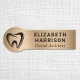 Modern brushed gold faux metallic professional name tag for dentists, dental assistants, dental hygienists and other members of a dental or orthodontist office. Keep the tooth logo or replace with your logo. Add a name and position in simple typography.