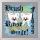 Cool canvas grunge art prints for the dentist's office. Brush, floss, rinse SMILE! Cool kawaii art teeth with a modern grunge effect. Swirls and various paint spatters give this cute dentistry art texture, and two happy kawaii art teeth make it eye catching. Get kids (as well as adults) attention in the dental office with a cool custom graphic art print with an important message. Clean teeth are healthy, happy teeth!