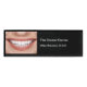 Simple Dentist office staff smile theme name tags on high quality acrylic with graphic of a beautiful teeth smile and two lines of text you can customise with your dental business name and staff member name.