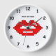 Dentist office wall clock with white teeth mouth. Personalise text with name, monogram, funny quote or slogan. Cute design for the waiting room of your dental clinic or hygienist practice. Custom background colour. Square or round wallclocks.