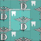 fabric featuring the universal symbol for dentistry and a tooth and a diagonal cross pattern.
