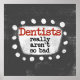 A fun dentistry themed typographic piece with the words "Dentists Really Aren't So Bad". It's grey and white with black and red text and white whimsical dots surrounding the phrase.