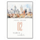 Denver Colorado Skyline Watercolor Wedding Table Number