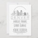 A unique wedding invitation for a marriage taking place in the beautiful city of Denver, Colorado. This invitation features a stylised illustration of the city's unique skyline with its name underneath. This is followed by your wedding day information in a matching open lined style. On the reverse side of the invitation is a deep grey colour to complement the look and feel. All individual elements of the invite card are unlocked so feel free to change or add any details necessary by using the customisation function. You can add a photo to the reverse side and add a black and white filter to it.