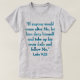 This shirt comes in different styles, sizes, and colours. Choosing lighter vivid colours will have the words pop out better for all to see and read.