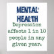Mental health is a growing problem. Show your thoughts with this mental health-themed quote: Depression affects 1 in 10 people in any given year.