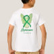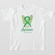 The green awareness ribbon art shirts can be customised with personalised messages to make great cause buttons for fundraiser team walk shirts, awareness tshirt gifts, or other special events for awareness cause occasions. See more of our art at AwarenessGallery.com. In partnership with DonnaBellas Angels.org