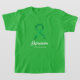 Depression awareness uses a green ribbon. The awareness ribbon pin features the painting of a green awareness ribbon art on a t-shirt. The awareness ribbon art pendant notes "Depression Awareness". The shirt message can be updated to your own personal awareness message wording.