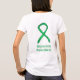 Depression awareness uses a green ribbon for its cause awareness. The shirt art features a green awareness ribbon art painting. The awareness t-shirt message notes "Depression Awareness". There is a large image on the back of the shirt and a smaller picture on the front of the shirt.