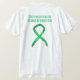 Depression awareness uses a green ribbon for its cause awareness. The shirt art features a green awareness ribbon art painting. The awareness t-shirt message notes "Depression Awareness". There is a large image on the back of the shirt and a smaller picture on the front of the shirt.