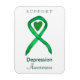 Depression uses a green ribbon to support awareness for its cause. The custom magnet features a green awareness ribbon heart art magnet with the message "Support Depression Awareness". The green awareness ribbon art can be customised with personalised messages to make great cause merchandise magnets for fundraisers, awareness gifts, or other special cause events or occasions.