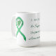 The custom green awareness ribbon art picture coffee cups or mugs can be customised with personalised messages to make great cause mugs for awareness fundraisers, awareness cup gifts, or other special events or cause support occasions. Make your own customised words for a personal message of hope and support to share!