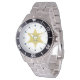 This watch is decorated with a gold sheriff 's six pointed star badge and can be customised with a name.