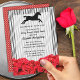 Derby themed bridal shower invitations feature black and white stripes, red roses and a race horse silhouette. All fonts, text, text colours, sizes can be modified, just click the Customise further link. MATCHING favours, plates, napkins, wine bottle labels, hand fans and more available in our store.