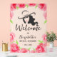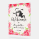 A bridal shower acrylic welcome sign features a lady's silhouette bordered with pink watercolor roses. MATCHING items in our collection.