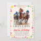 Modern Horse Race Derby Party Invitation with an illustration of a race horse with jockey and striped pattern on the back. All text elements can be changed so this design can be used for other events too: classy equestrian wedding invitation, horse birthday party, derby watch party, horse barn opening and more. Background, colour of the illustration and text colours can be changed using the design tool!