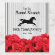 Create personalised wine bottle labels for your bridal shower featuring a race horse on a black and white stripe background highlighted with red roses. MATCHING items in our collection.