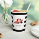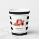 This elegant baby shower paper cup features a a big derby style red hat with roses and a black bow/ribbon on a white background with black stripes. Personalise for your needs. You can find more matching products at my store.