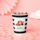 This elegant bridal shower paper cup features a a big derby style red hat with roses and a black bow/ribbon on a white background with black stripes. Personalise for your needs. You can find more matching products at my store.