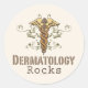 Dermatology Rocks with a caduceus and olive green floral graphic print on clothing, stationery and more medical theme merchandise. A cool and hip dermatologist gift for a doctor, medical student, resident, pre med student, intern or the family and staff of a physician. Cute Doctor's Day or medical school graduation present. Studios, LLC.