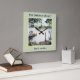 Designed based on watercolor painting by Farida Greenfield of Derwentwater in Lake District, Cumbria, England. It is a picture of tranquil Lake Derwent, with surrounded with picturesque summer trees and misty hills on the background. The design has pale green square frame on the outer side and texts that can be personalised on the top and lower side. It will make a lovely addition to your home decor or a housewarming gift for a new home.