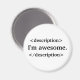 This magnet has a solid white background with simple black text as the foreground. It is a HTML pun where the owner is describing themselves as awesome (which they are).