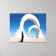 Unveiling 'Desert Arcana: Monoliths of Memory', a profound art print that captures the intersection of history and the timeless. A figure clad in the elegance of darkness contemplates an imposing structure where the past seems to unravel into the present. Monumental arches rise from the sands, one a seamless loop to the sky, the other a fragmented stairway, each stone a testament to the stories that time forgets. The arches stand as gatekeepers to the unknown, their dual nature a dialogue between the ephemeral and the eternal. With a backdrop of serene blue and the untouched sands of the desert, 'Desert Arcana: Monoliths of Memory' invites viewers to traverse the layers of their own histories, beckoning them to reflect on the monuments they will leave behind in the sands of time. Photo collage art and design © 1201AM