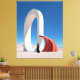 Discover 'Desert Arcana: Spires of Reflection', an evocative art print that juxtaposes the simplicity of the desert with the complexity of human ingenuity. In the forefront, a lone figure attired in black contemplates a pair of intertwined spires: one pristine and white, soaring skywards, and the other a cascade of crimson curves, grounding the structure to the earth. The interplay of the two creates an optical dance, where light and shadow, solidity and space, speak to the dual nature of existence. This artwork captures a moment of stillness amidst the grandeur of scale and the subtlety of colour, inviting the viewer into a meditative state of mind. 'Desert Arcana: Spires of Reflection' is a visual metaphor for the internal journey we all undertake, seeking balance between the lofty and the grounded in our search for meaning. Photo collage art and design © 1201AM