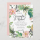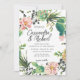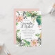 This cactus dessert blooms invitation is the perfect way to announce your desert destination wedding! It features cactus and succulents around the edge, highlighting the bride and groom's names in a cursive font on a bright white background. All the important wedding details can be personalised. Colours include green, pink, white, yellow and black.