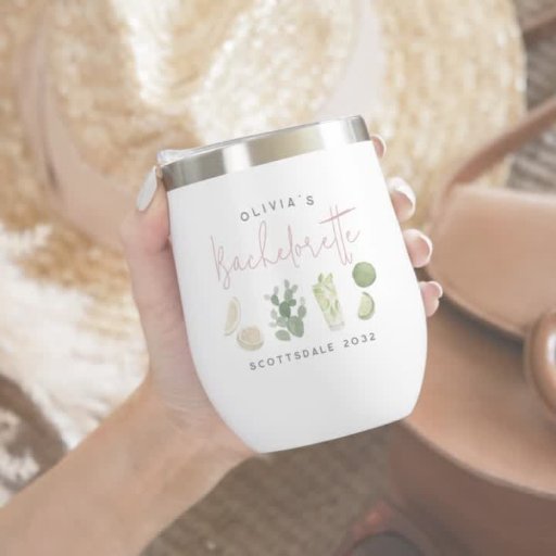 Get the party started with these cute wine tumblers that are easy to personalise for your bachelorette party, hen night, or girls' weekend! Desert boho style design features delicate watercolor illustrations of lemons, limes, a cactus, and a mixed cocktail in a soft colour palette of sage green with dusty rose pink accent lettering. Personalise with three lines of custom text; shown with the bride's name, event type, location and date.
