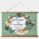 Perfect for the Rustic Luxe Desert Cactus Succulent Theme or Boho Desert Wood-Topped Wall Tapestry Wedding Welcome Sign. Coral Blush Pink and Green Destination Desert Cactus Succulent Gold Geometric Abstract Frame on this Wedding Typography. Wall Hanging